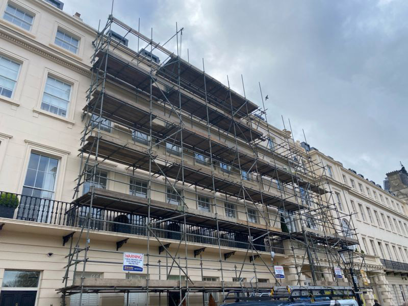 The start of an external repair and redecoration contract of 8 houses in Regent’s Park, London